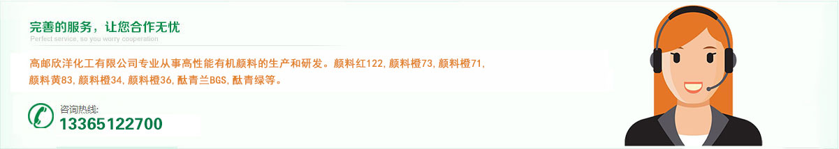 高郵欣洋化工有限公司(pqbio.cn)堅(jiān)持“以質(zhì)量求發(fā)展”的方針,"顧客至上"的經(jīng)營(yíng)理念,使產(chǎn)品質(zhì)量達(dá)到國(guó)際同類(lèi)產(chǎn)品的先進(jìn)水平。主要產(chǎn)品:顏料黃180,顏料紅122,顏料黃83,顏料紅254,顏料黃139,顏料黃183,顏料紅146,顏料黃168,顏料黃138,顏料黃110,顏料紅170,顏料黃191,顏料紅202,顏料黃151,顏料黃62,顏料黃74,顏料黃183,顏料紅176,顏料紫19,顏…